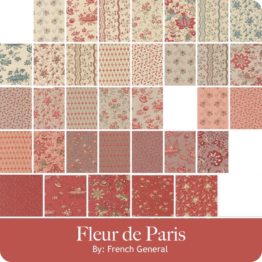 Fleur de Paris (38) Fat Eight Bundle by French General for Moda. Each F8 is approx. 9” by 22”.